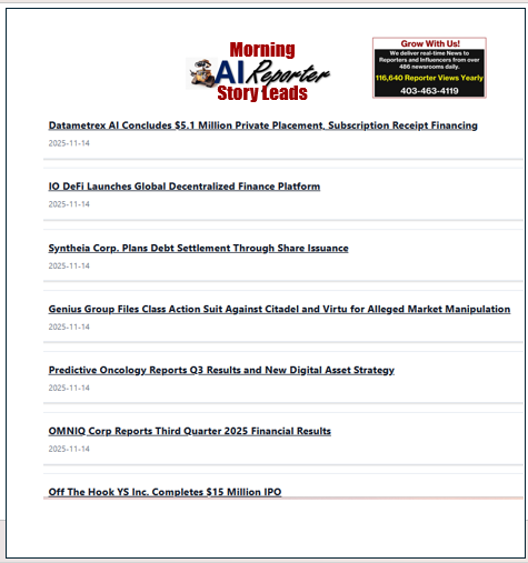 North America’s 606 AI Reporters began receiving their daily email dose of AI morning Summary.